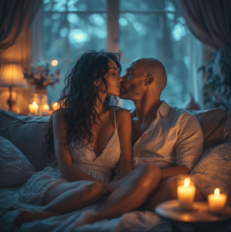 With swift, practiced grace, he guided me to my bedroom, our footsteps muffled by the thick hemp runner. Garments fell in a chaotic cascade, and my Inner Goddess mirrored every flicker of my mounting impatience. My fingers itched to draw him closer, to meld warmth with warmth, weight with weight, to feel him press fully against me in a communion that left nothing withheld.
